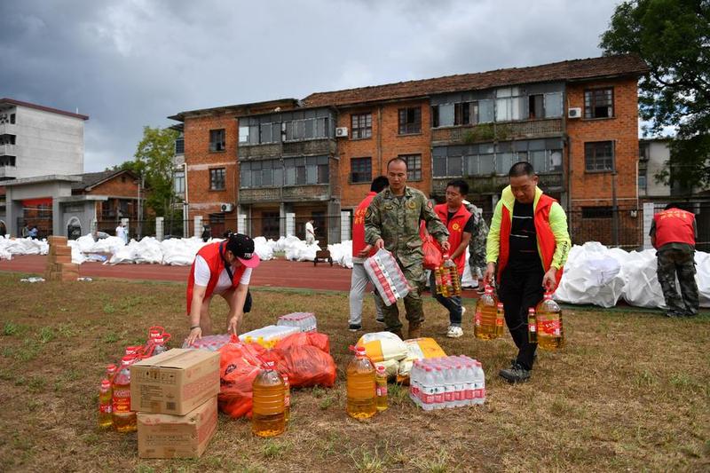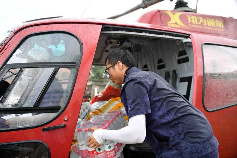 في الصور الملتقطة متطوعون يعدون ضروريات يومية لنقلها إلى مروحية وتوزيعها على البلدات المنكوبة في مدينة تسيشينغ بمقاطعة هونان في وسط الصين. وشاركت مروحيات عديدة يوم الاثنين الماضي في عمليات الإنقاذ ونقل الإمدادات المعيشية الضرورية للمنكوبين عقب تعرض المدينة لأمطار غزيرة.