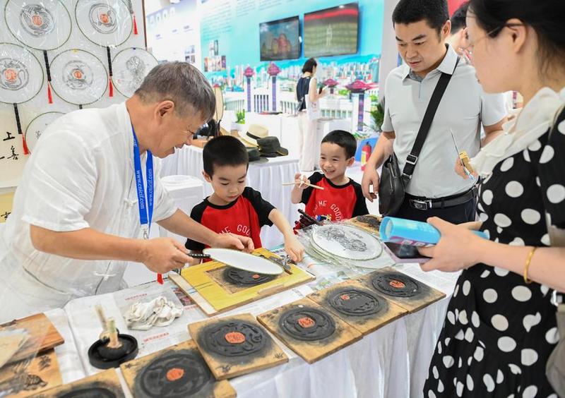 في الصورة الملتقطة طفلان يجربان مهارة الطباعة الصينية التقليدية في منطقة العرض الخاصة بمقاطعة جيانغشي خلال المعرض الصيني (شنتشن) الدولي الـ21 للصناعات الثقافية في مدينة شنتشن بمقاطعة قوانغدونغ جنوبي الصين. وافتتح المعرض يوم الخميس الماضي وسيمتد لخمسة أيام ويضم ثمانية قاعات عرض، حيث جذبت أنشطة متعلقة بالثقافة التقليدية والتراث الثقافي العديد من الزوار الشباب.