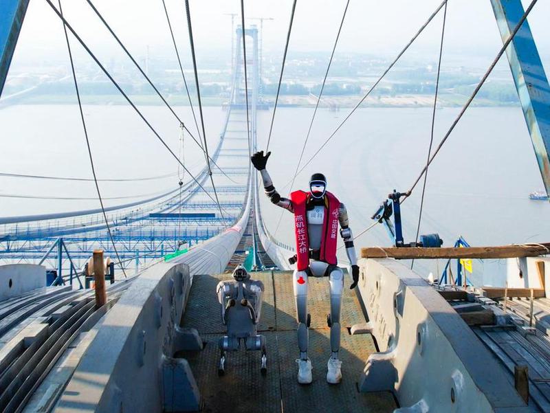 تسلق روبوت بشري وكلب روبوت مؤخرا جسر يانجي على نهر اليانغتسي بوسط الصين، ليشاركا في تحدي المشي على أطول “طريق قطط” في العالم.
