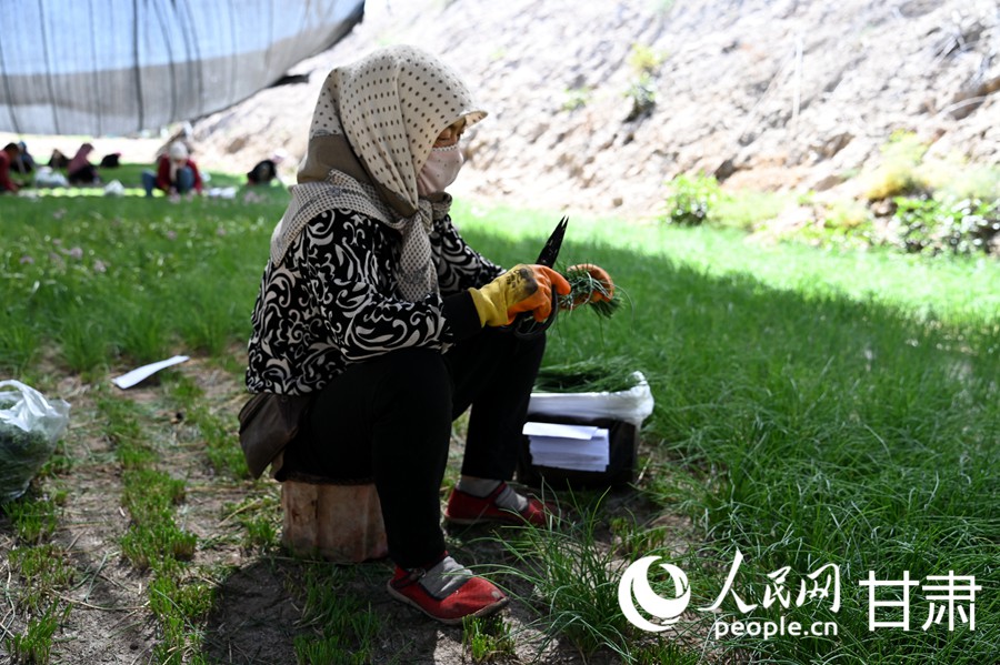 تشهد المساحات الرملية الشاسعة في قرية بايي ببلدة دابا في محافظة مينتشين بمقاطعة قانسو مؤخرًا، حصادا واسعا من بصل الرمل الاخضر الطازج والطري، برائحة قوية وطعم لاذع.