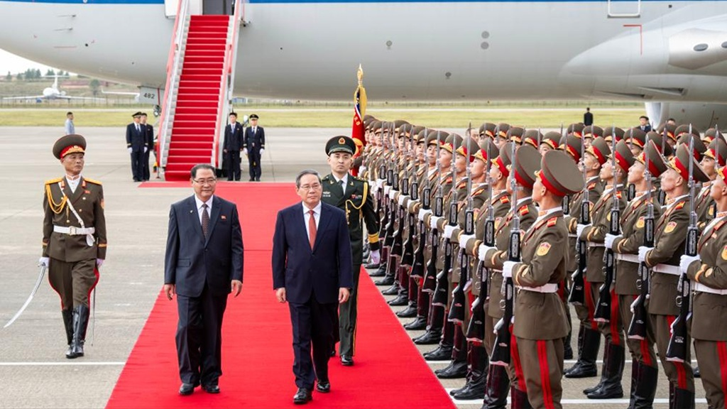 رئيس مجلس الدولة الصيني يعود إلى بكين عقب حضوره احتفالات الذكرى الـ80 لتأسيس حزب العمال الكوري وإجراء زيارة رسمية ودية إلى كوريا الديمقراطية