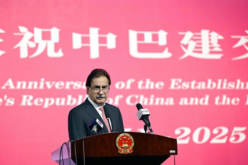 في الصورة الملتقطة يوم 21 مايو 2025، رئيس الجمعية الوطنية الباكستانية سردار أياز صادق يتحدث خلال حفل أقيم بمناسبة الذكرى الـ74 لإقامة العلاقات الدبلوماسية بين الصين وباكستان في إسلام آباد، باكستان. (شينخوا)