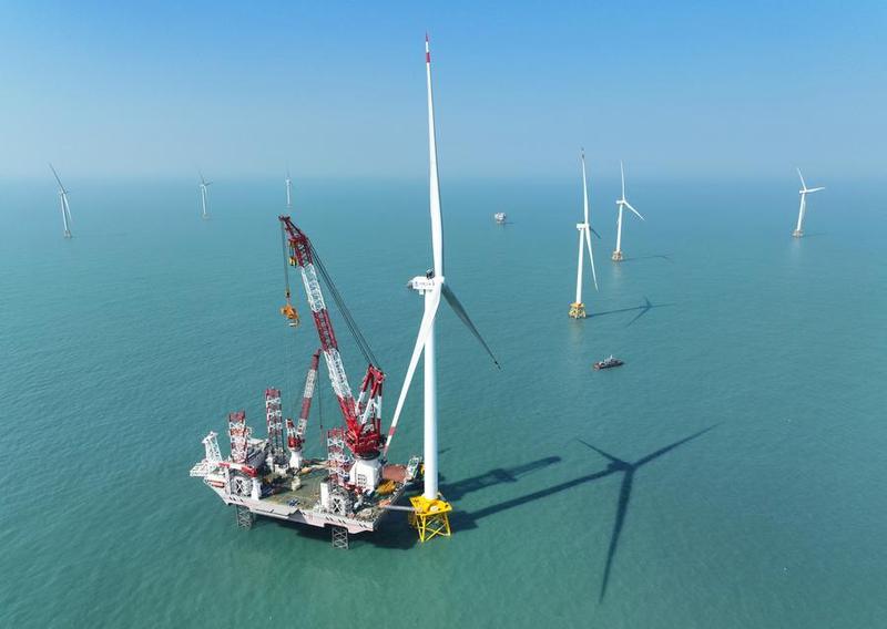 أقوى توربين رياح بحري في العالم يزود الشبكة الكهربائية بالطاقة في جنوب شرقي الصين