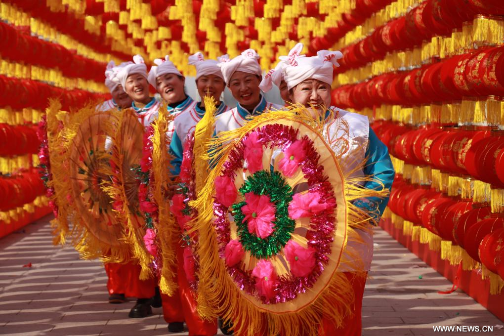 بكين 15 فبراير 2026 (شينخوا) في الصورة الملتقطة يوم 13 فبراير 2026، فنانون يتدربون على عرض بمناسبة رأس السنة الصينية الجديدة في مدينة آنيانغ بمقاطعة خنان وسط الصين. وتقام فعاليات احتفالية متنوعة في جميع أنحاء الصين احتفالا بقدوم عام الحصان.