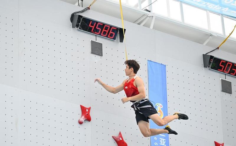 المتسلق الصيني تشاو يحطم الرقم القياسي العالمي في سباق التسلق السريع للرجال في دورة الألعاب الشاطئية الآسيوية