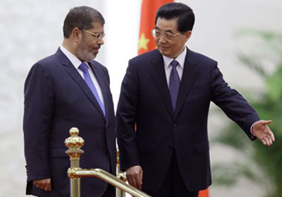 أكد الرئيسان محمد مرسي ونظيره الصيني هو جين تاو، في جلسة المباحثات الموسعة بين الجانبين، ضروة تعزيز وتعميق علاقات التعاون المشترك بين البلدين .