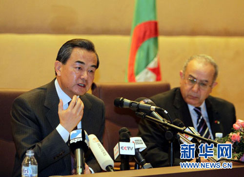 في يوم 21 ديسمبر عام 2013، أوضح وزير الخارجية وانغ يي سياسة الصين تجاه الدول العربية في ظل الأوضاع الجديدة في المؤتمر الصحفي المشترك مع نظيره الجزائري رمطان لعمامرة في الجزائر.
