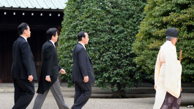 وزار آبي المحافظ وذو القناعات القومية، هذا المكان المهم في الديانة الشينتوية في وسط طوكيو قبيل ظهر الخميس، وذلك بعد عام على عودته إلى السلطة في 26 كانون الأول/ديسمبر 2012.