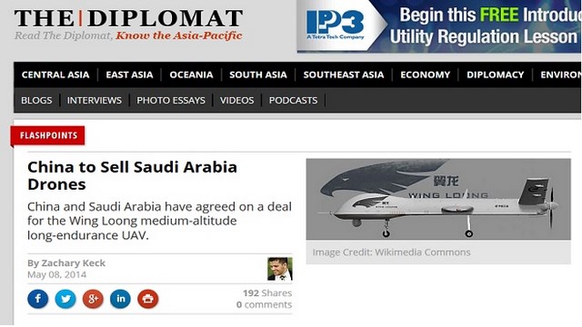 اتفاق السعودية مع الصين على صفقة طائرات بدون طيار، يمكنها التحليق على ارتفاعات متوسطة من طراز وينج لونج ، وهي قادرة على حمل صواريخ.