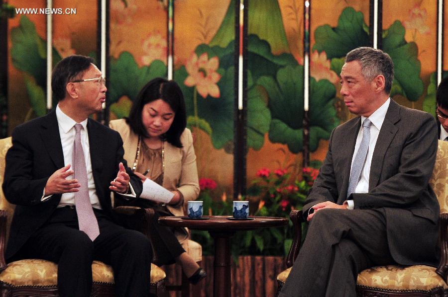 التقى رئيس وزراء سنغافورة لي هسين لونج الجمعة بعضو مجلس الدولة الصيني يانغ جيه تشي هنا.