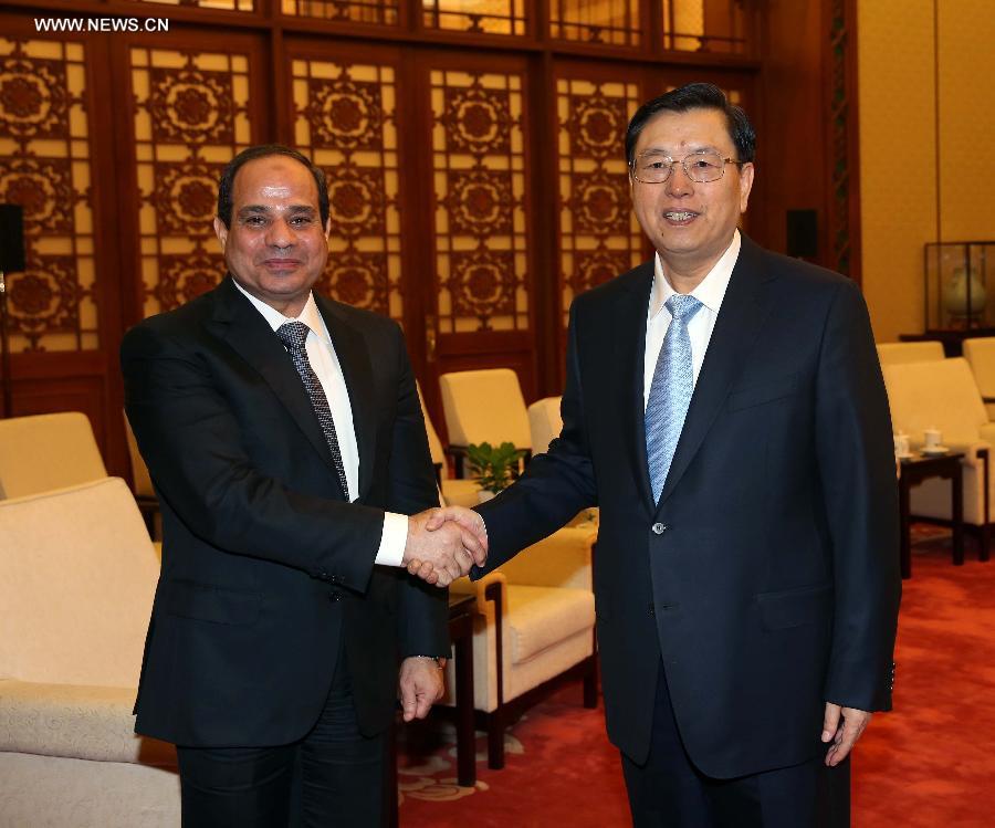 التقى كبير المشرعين الصينيين تشانغ ده جيانغ الأربعاء بالرئيس المصري الزائر عبد الفتاح السيسي سعيا لإرساء علاقات اقوى.