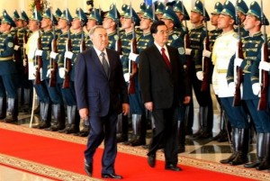 التحادث الرئيس الصيني هو جينتاو الاثنين مع نظيره الكازاخستاني نور سلطان نزارباييف في اطار زيارته لكازاخستان، المحطة الاولى من جولة على دول الاتحاد السوفياتي السابق التي ترغب بكين في ابرام اتفاقات معها في مجال الطاقة.
