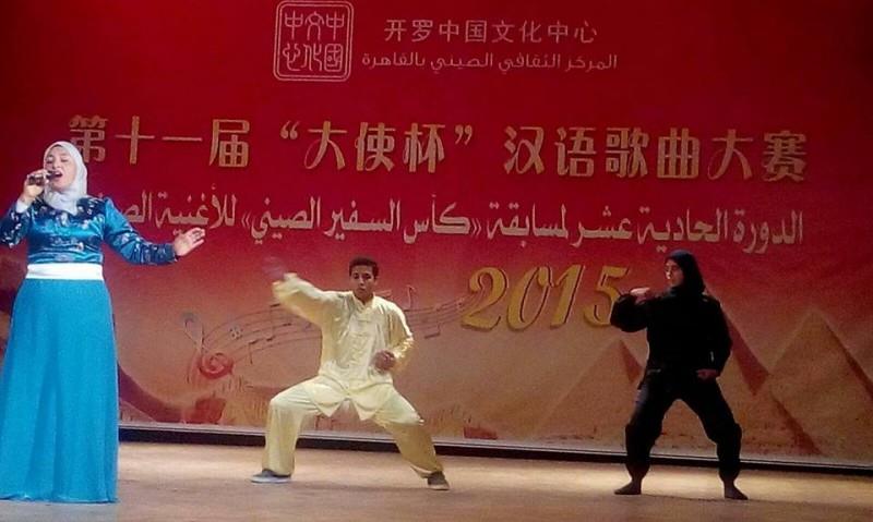 انتهت الدورة الحادية عشر لمسابقة كأس السفير الصينى للأغنية الصينية التي ينظمها المركز الثقافي الصيني، على خشبة سيد درويش وفي قاعتها الكبيرة بأكاديمية الفنون بمحافظة الجيزة، وشارك فيها 74 طالباً وطالبة من دارسي اللغة الصينية، تنافسوا لحصد المراكز الأولى، سواء في الغناء الفردي، أو الأغانى الجماعية والشعر والقصة، إضافة إلى بعض الرياضات القتالية، كالووشو والكونغ فو من جامعات عين شمس، وحلوان، وجامعة العلوم والتكنولوجيا، المركز الثقافي الصيني، معهدي كونفوشيوس بجامعة قناة السويس وجامعة القاهرة، وغيرها من المعاهد والجامعات المصرية..