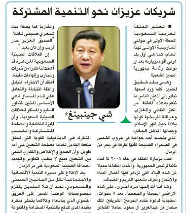 صحيفة الرياض السعودية تنشر مقالا للرئيس الصيني