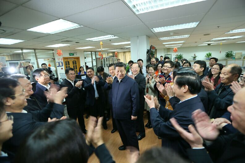 وخلال تفقده لغرفة الاخبار العامة شجع الرئيس العاملين على مواصلة تحسين نوعية وسمعة الصحيفة الرئيسية للجنة المركزية للحزب الشيوعي الصيني.