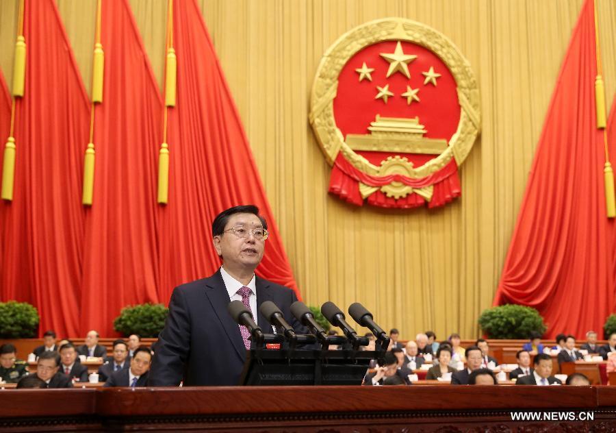 وقال تشانغ, رئيس اللجنة الدائمة للمجلس الوطنى لنواب الشعب الصيني خلال تقديمه تقرير عمل اللجنة إلى الدورة السنوية الرابعة للمجلس الوطني الثاني عشر لنواب الشعب الصيني: “لقد دمجنا قيادة الحزب في كل عملية وفى كل جانب من عمل المجلس الوطني لنواب الشعب الصيني، ودعمنا القيادة المركزية والموحدة للجنة المركزية للحزب الشيوعي الصيني.”