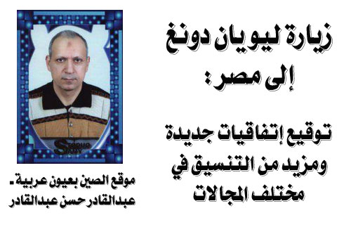 زيارة ليو يان دونغ الى مصر: توقيع إتفاقيات جديدة ومزيد من التنسيق في مختلف المجالات