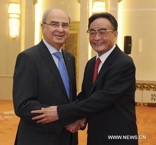 التقى كبير المشرعين الصينيين وو بانغ قوه برئيس مجلس الشيوخ الاردني الزائر طاهر المصري الجمعة، ودعا البلدين إلى اقامة تعاون أوثق فضلا عن الارتقاء بالعلاقات الثنائية إلى مستوى اعلى.