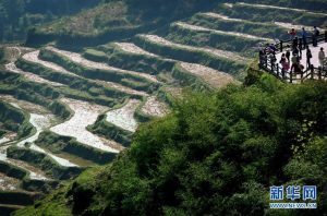 تعد الحقول المدرجة نموذجا للتعايش المتناغم بين البشرية والطبيعة وأبتكرها الفلاحون الصينيون منذ الآلاف السينين من أجل التكيف مع ظروف الطبيعة، فعلى سبيل المثال، يندر وجود السهول في المناطق الجنوبية من البلاد، لذا تلعب الحقول المدرجة نفس الدور في الحفاظ على رطوبة التربة، وفي المناطق الشمالية الجافة، تم تشييدها لمعالجة تآكل التربة.