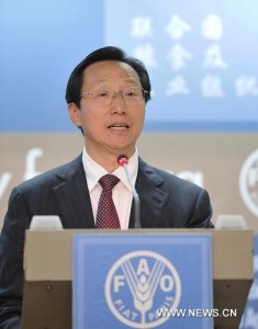 صرح وزير الزراعة الصيني هان تشانغ فو يوم 27 يونيو الحالي بروما بان الصين تلعب دورا إيجابيا لمساعدة الدول النامية على تحسين مستوى الإنتاج الزراعي وقدرة الإنتاج الغذائي وقدمت الصين مساهمة جليلة لضمان الأمن الغذائي العالمي،كما قال هان أن الصين مستعدة وآملة فى التعاون مع دول العالم الاخرى في العمل من أجل مواجهة التحديات فى الحالة الراهنة التي يشهد فيها وضع الأمن الغذائي العالمي تدهورا كبيرا.أدلى هان بتصريحاته هذه خلال كلمة القاها أمام الدورة السابعة والثلاثين لمنظمة الامم المتحدة للاغذية والزراعة.