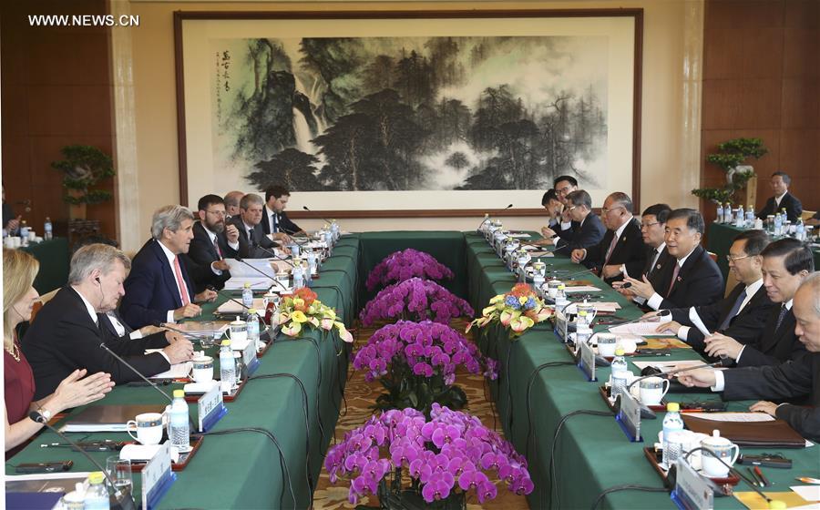 وقال وزير الخارجية الامريكى جون كيرى ان الولايات المتحدة والصين يتعين عليهما بذل جهود مشتركة لدفع اتفاقية باريس لان تصبح فعالة فى اقرب وقت ممكن.