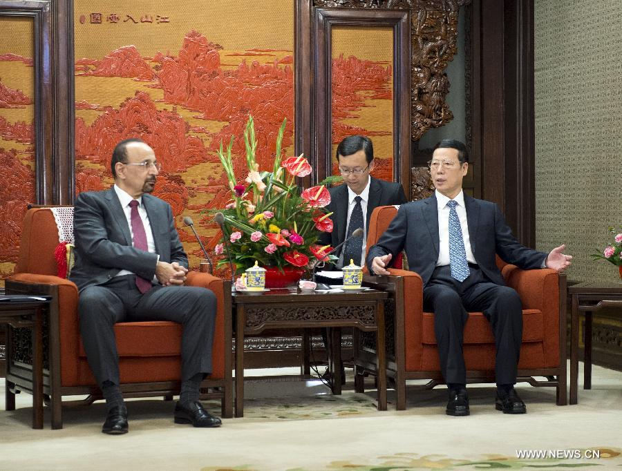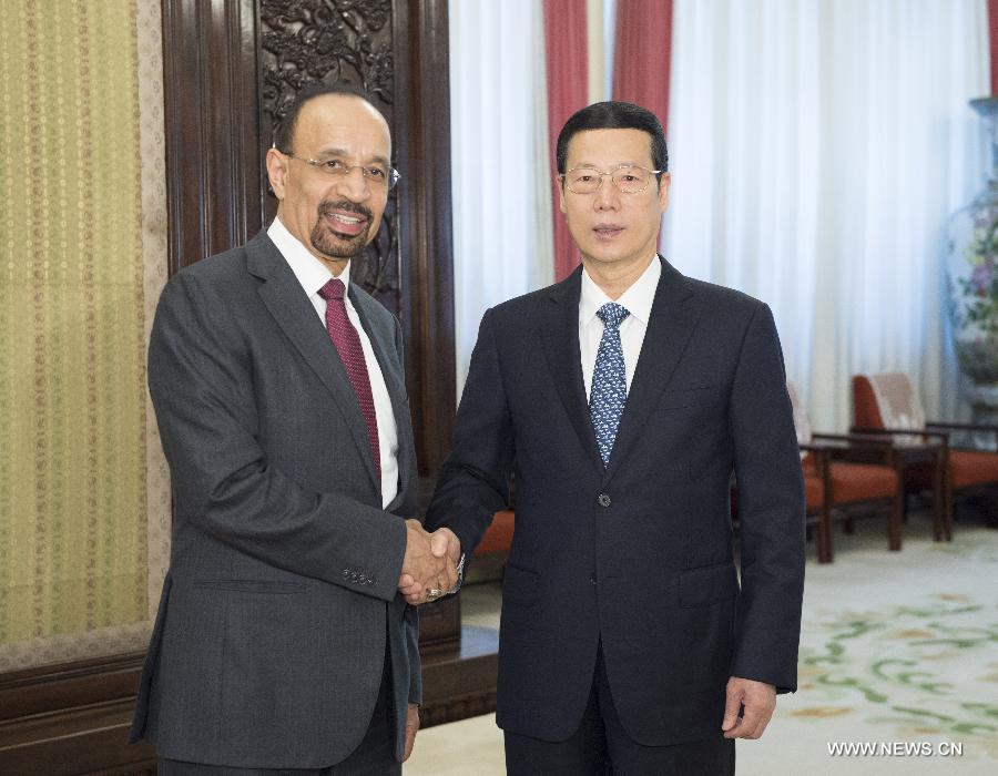 التقى نائب رئيس مجلس الدولة تشانغ قاو لى مع خالد الفالح وزير الطاقة والصناعة والموارد المعدنية السعودى المعين حديثا فى بكين اليوم الخميس، حيث تعهدا بزيادة تعزيز التعاون الاقتصادى الثنائى.
