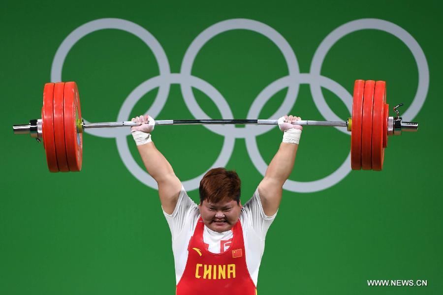 أحرزت الصينية مينغ سوبينغ الميدالية الذهبية بعد رفعها ما مجموعه 307 كغ في منافسات رفع الأثقال لوزن فوق 75 كغ سيدات في دورة الألعاب الأولمبية في ريو هنا يوم الأحد.