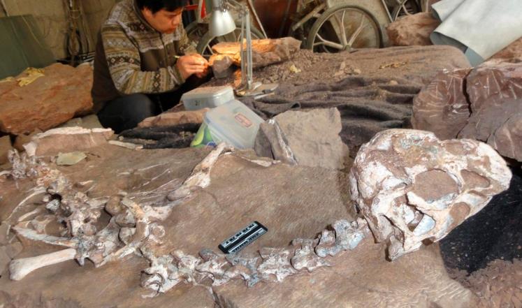 اكتشف مزارع وعمال بناء في الصين بقايا نوع جديد من الطيور شبيه بالديناصور يبدو أنه نفق بعدما علق في الطين.