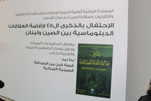 نظمت المصلحة الوطنية العامة الصينية للاعلام والنشر وسفارة الصين في لبنان، في قصر الاونيسكو ببيروت، معرض المطبوعات الممتازة الصينية وحفل اصدار الطبعتين الصينية والعربية لكتاب جديد بعنوان “يدا بيد – قصة قرن من الصداقة الصينية – اللبنانية”، وذلك في الذكرى ال45 لاقامة العلاقات الديبلوماسية بين البلدين، برعاية دار النشر الجامعة “رينمين” الصينية ومجموعة “فرنسبنك”.