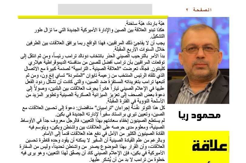 إذا كانت علاقة ترامب بالصين الآن هي علاقة متأرجحة وملتبسة، فإن الفترة المقبلة ستجعل القيادة الصينية تحدد المسار الذي يجب أن تعتمده في العلاقة مع هذه الإدارة الأميركية التي يصفها الكثيرون من المراقبين بأنها ستكون إدارة مضطربة غير متماسكة.. وربما غير متّزنة.