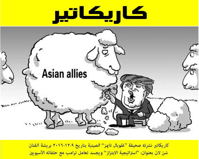 الصين والعالمخاصنشرة الصين بعيون عربية كاريكاتير ترامب وحلفاؤه في شرق آسيا (العدد 45) آخر تحديث فبراير 6, 2017 0 مشاركة كاريكاتير نشرته صحيفة ”غلوبال تايمز“ الصينية بتاريخ 9-12-2016 بريشة الفنان شن لان بعنوان: ”استراتيجية الابتزاز“ ويجسد تعامل ترامب مع حلفائه الآسيويين الصينالعالمالعدد 45النشرة الإلكترونيةالنشرة الالكترونيةالولايات المتحدة الامريكيةخاصخاص بموقع الصين بعيون عربية 0 مشاركة FacebookTwitterGoogle+ReddItWhatsAppPinterestالبريد الإلكتروني