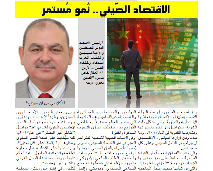 فهؤلاء لم يتوقّفوا يوماً عن الإدّعاء بتراجع الاقتصاد الصيني، واقتراب ما يَصفُونه بـ”الكارثة الصينية”، واهمين بأن فبركاتهم السطحيّة المُسوّقة للرأي العام العالمي، وإدّعاءاتهم المُضحِكة هذه، يَمكن أن تطيح بالصين واقتصادها المُتعاظم، الذي سيصل بها لا مَحالة، الى حتمية تشكيلها حكومة الظل الاقتصادية العالمية، بالتعاون مع حُلفاء الصين، إذ لم يَعد بوسع الإمبرياليتين الدوليتين والمتداخلتين، العسكرية والاقتصادية، عرقلة تأسيس هذه الحكومة التي ستدير العالم مستقبلاً بعدالة في التوزيع بين مختلف الدول والشعوب الصغيرة والكبيرة.