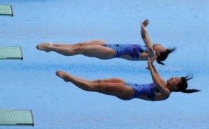 وتقدمت الصينيتان بفارق كبير على الكنديتين اميلي هايمانز وجنيفر ابل اللتين حصلتا على الفضية (50ر313 نقطة)، فيما كانت البرونزية من نصيب الاستراليتين انابل سميث وشارلين ستراتون (60ر306 نقاط).