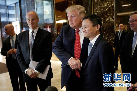 أفادت وسائل الإعلام الأمريكية بأن الرئيس الأمريكي المنتخب دونالد ترامب اجتمع مع مؤسس عملاق التجارة الالكتروني الصيني على بابا جاك ما فجر اليوم 10 يناير الحالي بتوقيت بكين.ووصف ترامب الاجتماع بأنه رائع،وقال انهما سوف يقومان بأشياء عظيمة. من جانبه،قال جاك ما،ان علي بابا سوف تخلق مليون فرصة عمل جديدة فى الولايات المتحدة خلال السنوات الخمس المقبلة.
