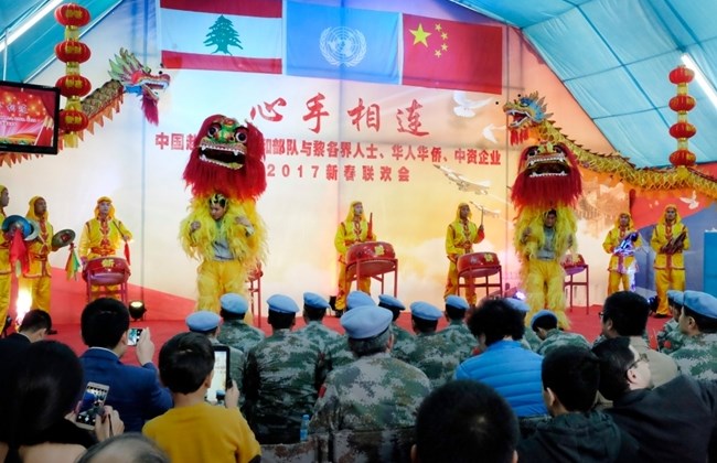 احتفلت الكتيبة الصينية العاملة في اطار قوات الطوارئ الدولية في جنوب لبنان بالعام الصيني الجديد الذي يطلق عليه عام “الديك” بعنوان “يد بيد وقلب لقلب” الذي يتزامن ومرور 45 عاما على الصداقة اللبنانية الصينية ومرور 10 سنوات على دخول الكتيبة الصينية للعمل في إطار اليونيفيل، بدعوة من الجمعية الصينية العربية للتبادل الثقافي والتجاري.