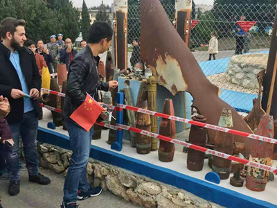 وكان في استقبال الحضور قائد الكتيبة العقيد بو يي وكبار الضباط الصينيين، على صوت قرع الطبول وضرب السناجق احتفاء بالضيوف، ثم جال الحضور على اقسام المقر واستمعوا لشرح من الضباط الصينيين عن مهامهم وعن الخط الازرق وكيفية عملية نزع القنابل العنقودية والالغام والقذائف التي خلفتها الحرب، كما زاروا معرض القذائف والقنابل واستمعوا لشرح مفصل عنها في ساحة الكتيبة.
