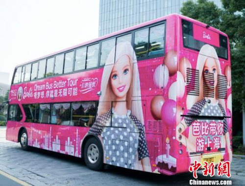 ابتداءا من يناير عام 2017، تظهر أول حافلة مزينة بعناصر باربي في آسيا على شوارع شانغهاي رسميا. ويُذكر أن الحافلة وردية اللون صممت خاصا لمشاهدة معالم المدينة، وتتكون من طابقين، ويكون الطابق الأعلى من تصميم السقف الشفاف، ما يمكن الزوار من مشاهدة مناظر شوارع شانغهاي على طول الطريق. كما يكون هناك السحرة للتفاعل مع الزوار.