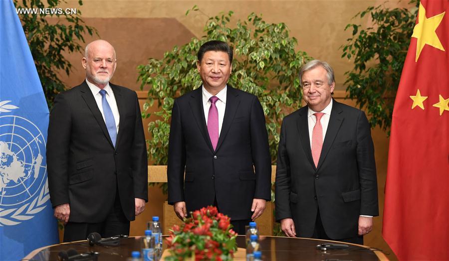 أدلى شى بهذه التصريحات أثناء اجتماعه مع بيتر تومسون، رئيس الدورة ال71 للجمعية العامة للأمم المتحدة وأنطونيو جوتيرش الأمين العام للأمم المتحدة، فى مقر الأمم المتحدة فى جنيف.