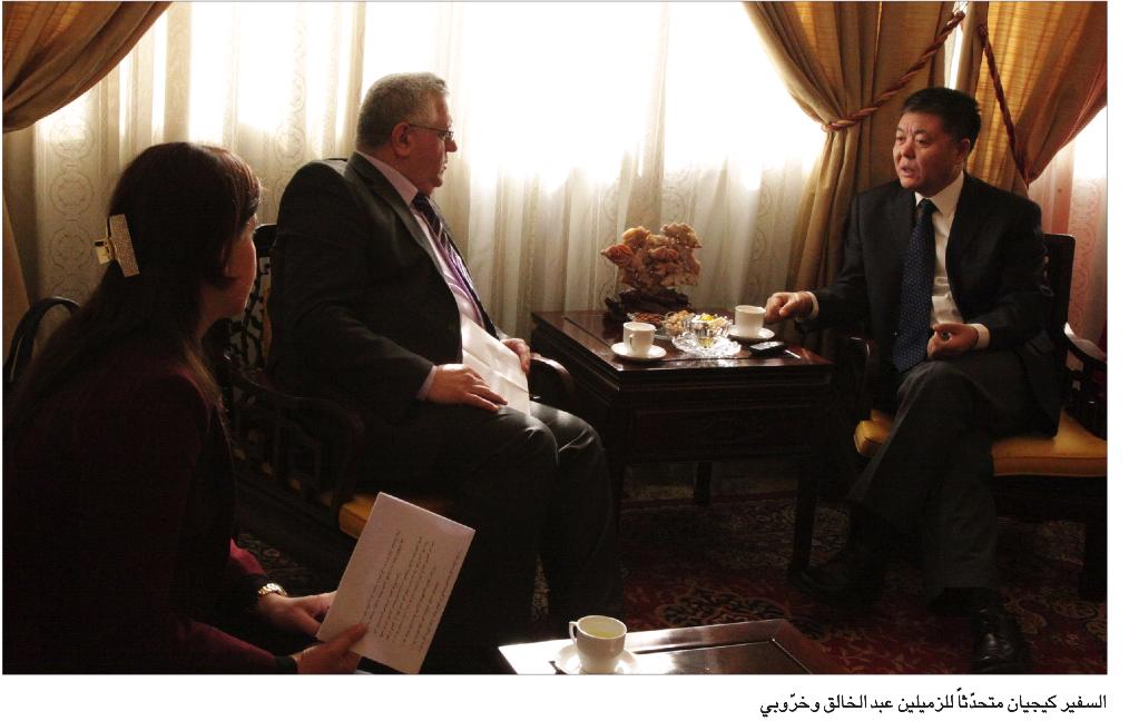 ـ الصين قدمت دفعات من المساعدات الإنسانية لسورية عبارة عن أدوية وأجهزة طبية وخيم وغرف جاهزة عن طريق الهلال الأحمر السوري والحكومة السورية، كما قدمت مساعدات للدول المجاورة التي تستضيف النازحين مثل لبنان وتركيا والأردن. وعلى صعيد إعادة الإعمار نحن جاهزون للمشاركة. فهناك علاقات قديمة تربط الصين وسورية ونحن نشعر بأسف وألم لهذا الدمار الذي لحق بهذه الدولة وسفك الدماء الذي يجري، وبموازاة سعينا إلى توفير مناخات الحلّ السياسي، مستعدون للمساهمة في إعادة الإعمار والشركات الصينية جاهزة لذلك. طبعاً هناك عراقيل اليوم وفي مقدمتها الوضع الأمني وعقبات فنية مثل العقوبات المالية الأميركية الأوروبية على سورية ونأمل أن يستقر الوضع حتى تبدأ عملية إعادة الإعمار.