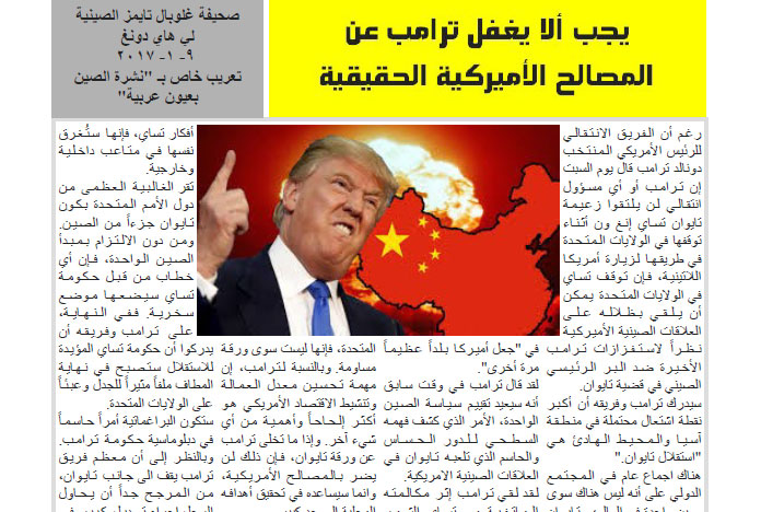 لقد قال ترامب في وقت سابق أنه سيعيد تقييم سياسة الصين الواحدة، الأمر الذي كشف فهمه السطحي للدور الحساس والحاسم الذي تلعبه تايوان في العلاقات الصينية الامريكية.