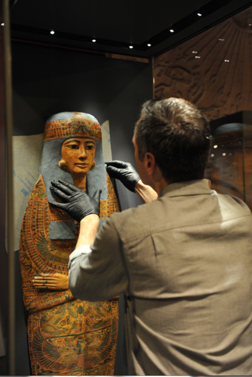 وباستثناء السيطرة بشكل صارم على استقرار الرطوبة لا بد من ضمان “عدم التلوث” في “البيئة الجزئية” في صناديق العرض الجديدة المصنوعة من ألواح الفيبر الكثيفة والتي أعدها المتحف لتخزين القطع الأثرية , وذلك عن طريق تغليف الألواح بغشاء من البلاستيك والألمونيوم أو قماش الكتان الخاص لضمان “تنفس” القطع الأثرية الهواء النظيف.