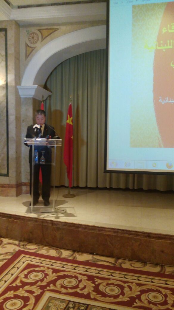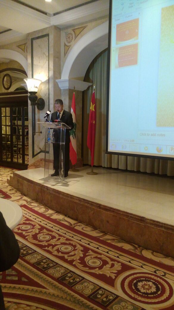 وبعد عرض مصور لأهم المحطات في العلاقات الصينية واللبنانية ولا سيما على الجانب الثقافي والأكاديمي ألقى السفير وانغ كيجيان كلمة في الحضور هذا نصها: