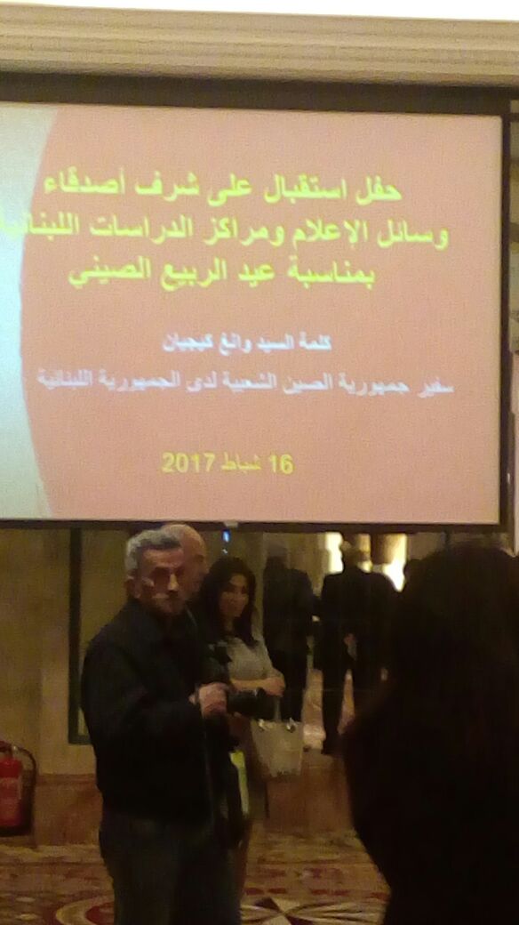 مرحبا بكم لحضور حفلة الاستقبال المخصّصة لوسائل الإعلام ومراكز الدراسات اللبنانية بمناسبة اختتام عيد الربيع الصيني التقليدي وانطلاق عام الديك في التقويم الصيني. توليت مهامي كسفير جمهورية الصين الشعبية لدى لبنان منذ شهر آب الماضي، ويسرني اليوم أن ألتقي بجميعكم وأتعرف على مزيد من النخب العاملين في وسائل الإعلام ومراكز الدراسات اللبنانية.