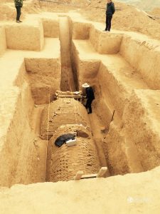 اكتشاف مقبرة قديمة على شكل هرم بموقع بناء في مدينة تشنغتشو