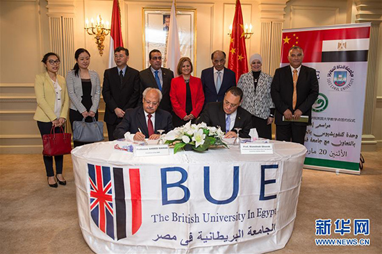 قامت جامعة قناة السويس والجامعة البريطانية بمصر بالتوقيع على مذكرة تفاهم فى مجال تعليم ونشر اللغة والثقافة الصينية بمصر.