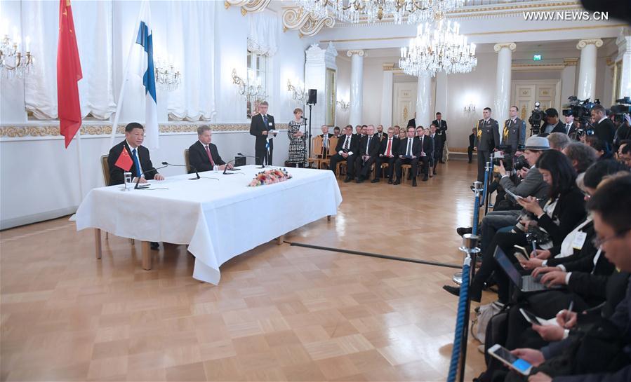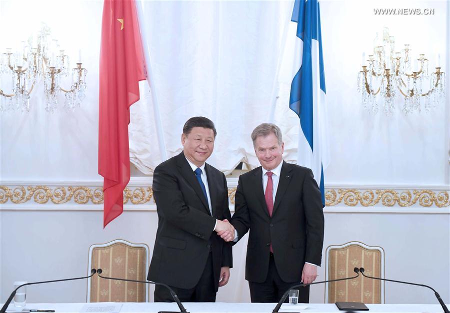 وخلال المحادثات بين الرئيس الصينى الزائر شى جين بينغ ونظيره الفنلندي سولى نينيستو، أكد الرئيسان أن بناء المزيد من العلاقات الاستراتيجية الثنائية الأكثر توجها للمستقبل والتى تواكب العصر هو أمر يحقق المصلحة الجوهرية لكلا البلدين وشعبيهما.