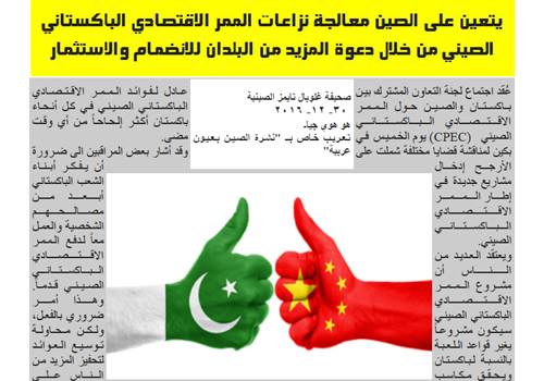 يتعين على الصين معالجة نزاعات الممر الاقتصادي الباكستاني الصيني من خلال دعوة المزيد من البلدان للانضمام والاستثمار