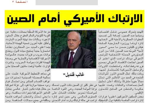 المقال خاص بنشرة ”الصين بعيون عربية“ – غالب قنديل*