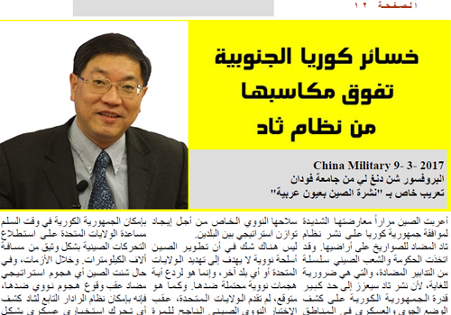 وفي مواجهة إصرار كوريا الجنوبية العنيد على الانضمام إلى الولايات المتحدة ضد الصين عن طريق نشر نظام ثاد، فإن المجتمع الصيني، حكومة وشعبا، متحدين وعازمين على اتخاذ التدابير المضادة اللازمة. يتعين على الصين اتخاذ خطوات ملموسة لاخبار كوريا الجنوبية والولايات المتحدة أنها عازمة وقادرة على الحفاظ على فعالية ردعها الاستراتيجي.