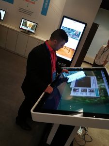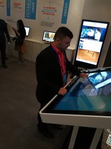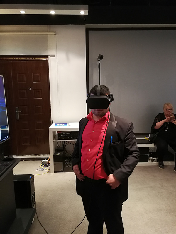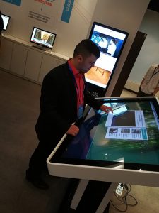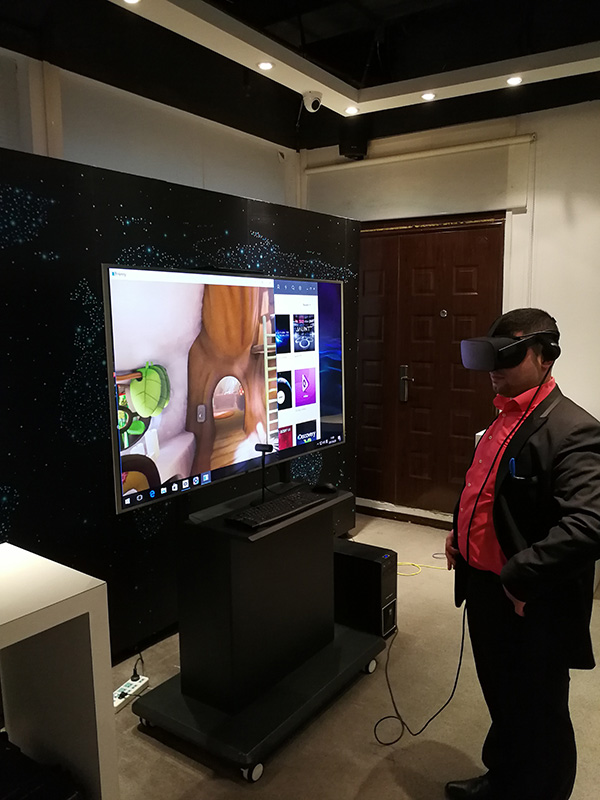 بعدها انتقلنا إلى غرفة تحتوي بعض الوسائل التقنية التي يطورها العاملون في المركز أو التي سبق وقاموا بتطويرها، منها شاشات اللمس الكبير والتي تعرض مواقعهم وتطبيقات الهواتف الذكية المطوّرة من قِبَلهم والأهم تقنيات الواقع الافتراضي والمستشعرات الذكية. وهنا كانت نهاية جولتنا في هذا المركز.
